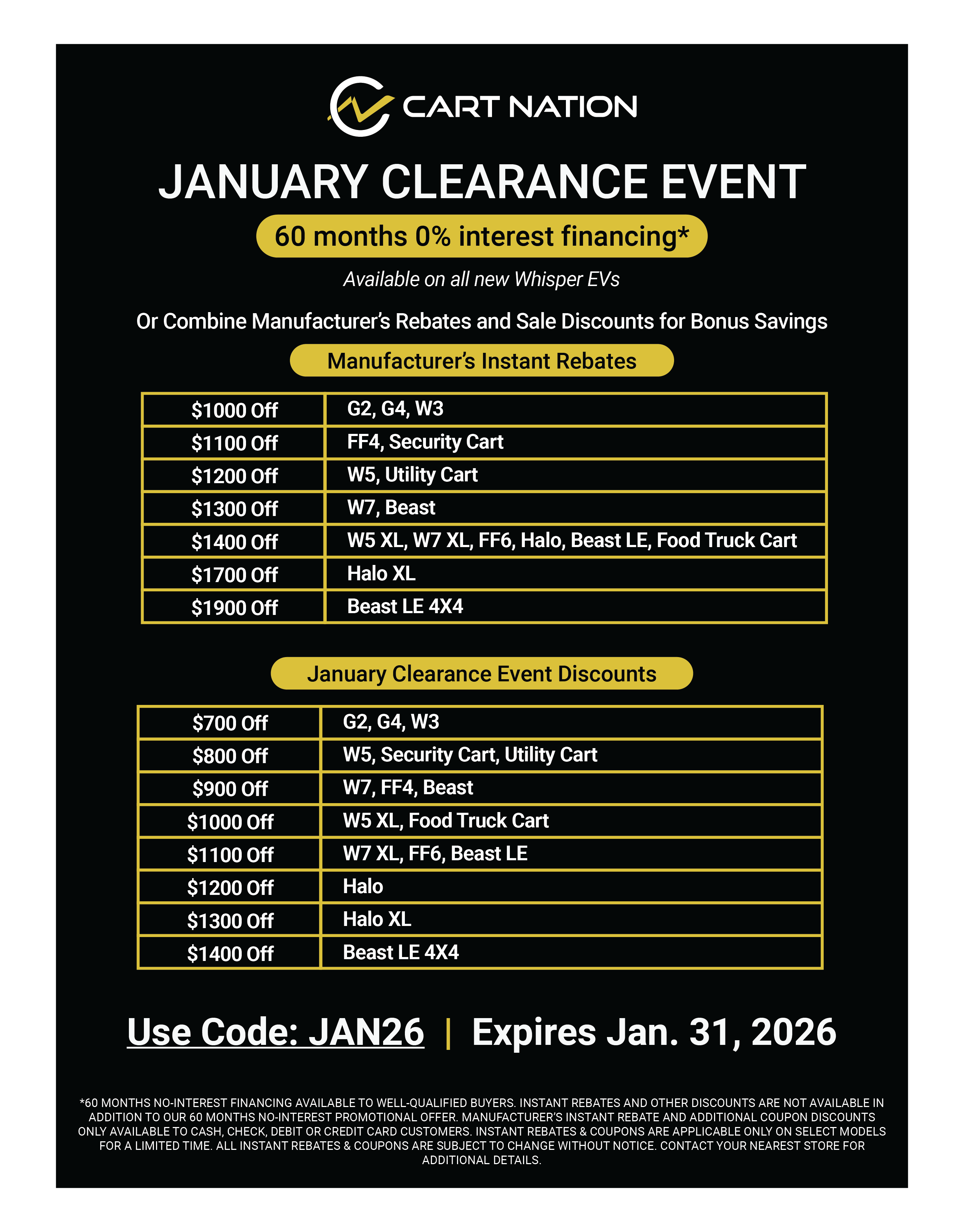 By selecting the checkbox, you consent to receive discount & other information by text message from GolfCarts.com. Message and Data rates may apply. Carriers are not liable for delayed or undelivered messages. Message frequency varies per user. Text help for help & stop to unsubscribe anytime. Click for our