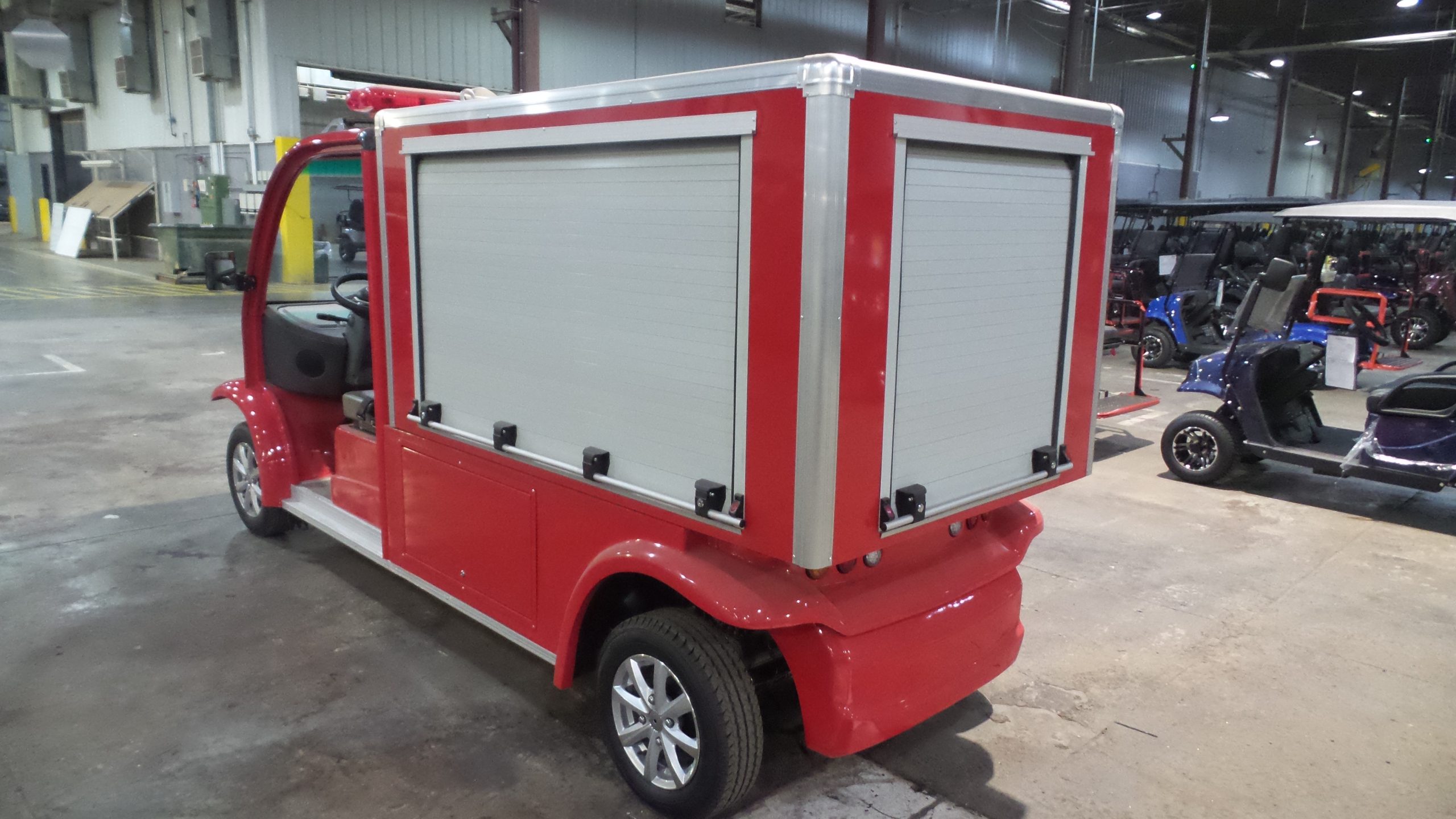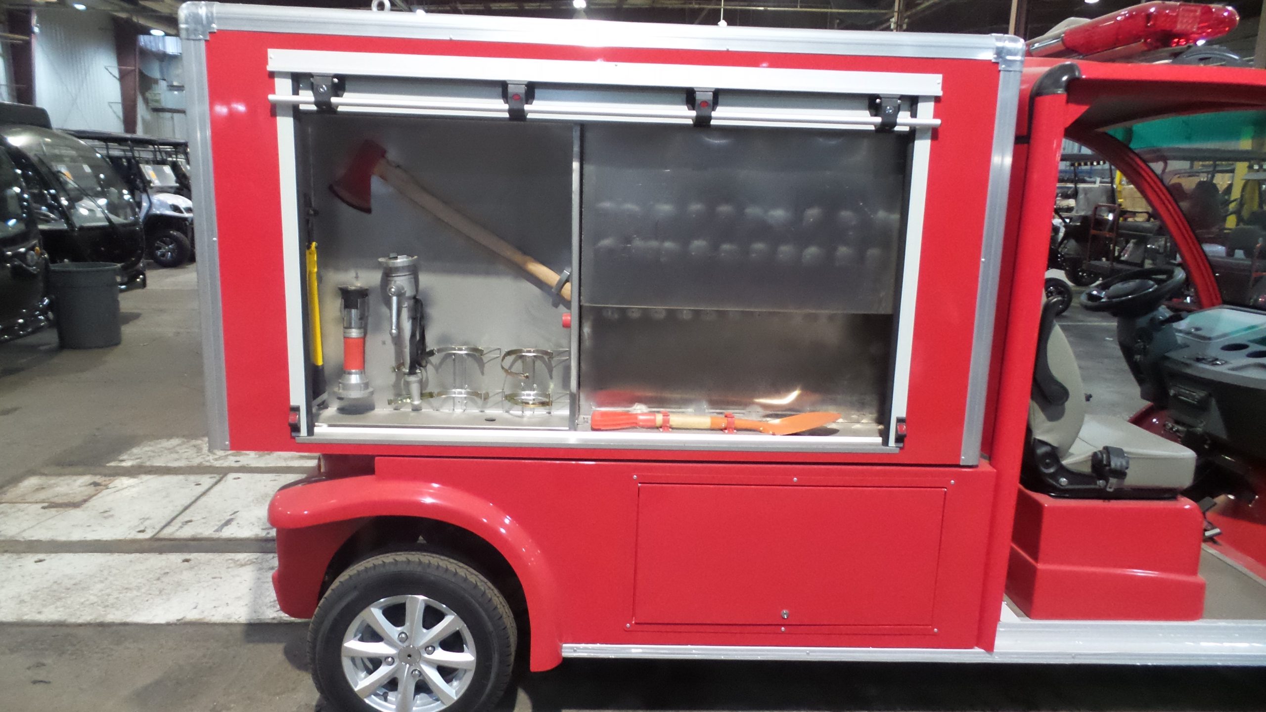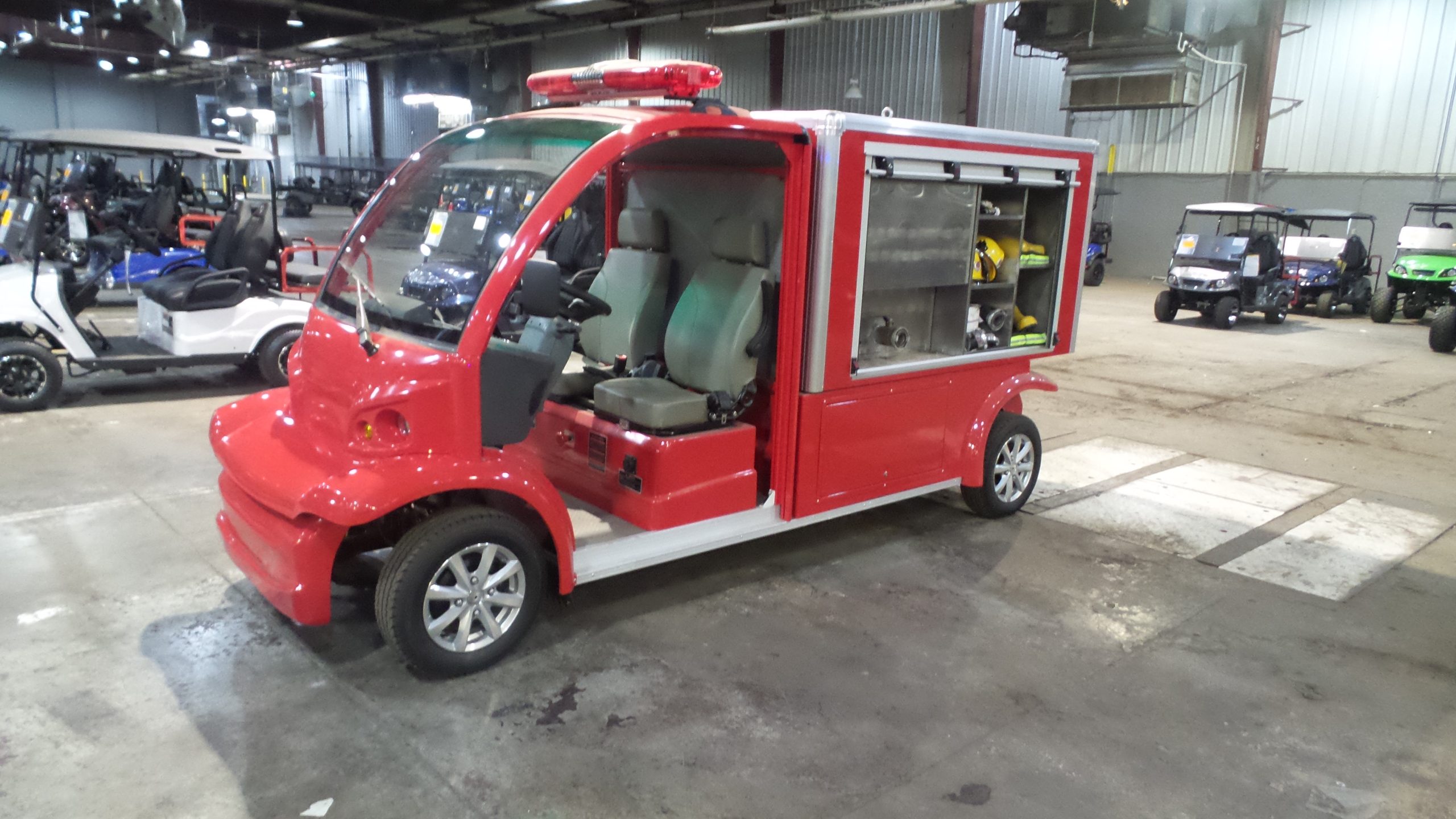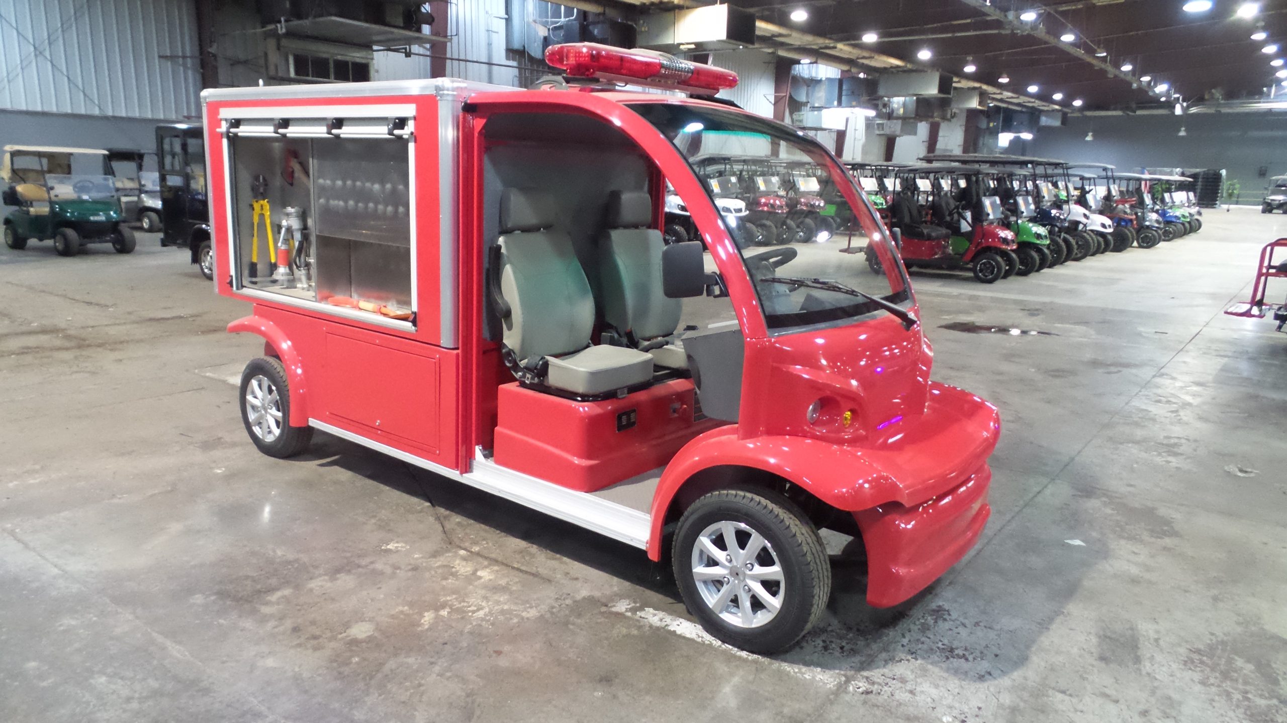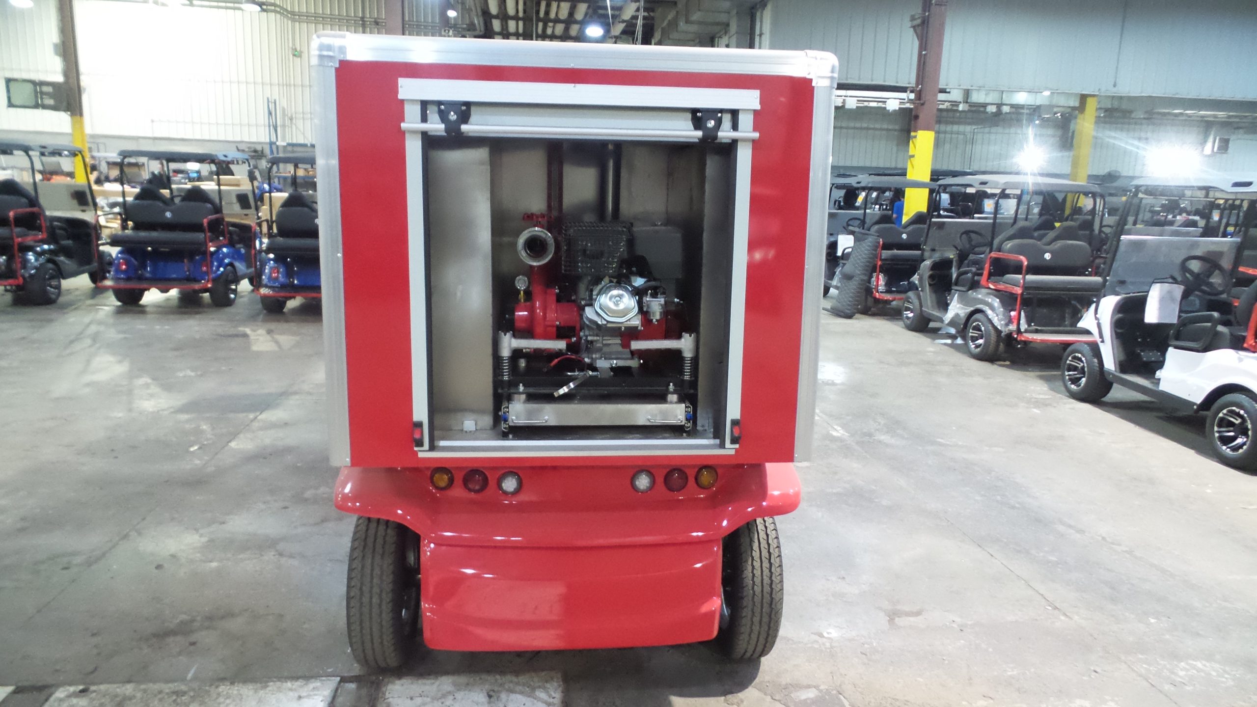 Year: 2025 Condition: NEW Make: MD Model: Fire Cart Powertrain: 48V Lithium 105AH Passengers: 2 Comments: 105AH Lithium, Water tank, gas water pump, hoses. 82” tall, 56” wide, 163” long