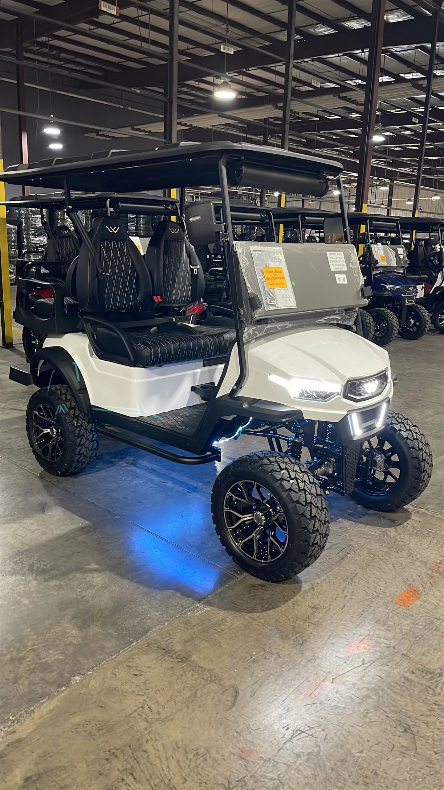 Comments: Factory 4 passenger, Soundbar, Digital touchscreen display, undercarriage led lights, shoulder seatbelts, 5kw High performance AC Motor and Controller, 14 in alloy wheel
