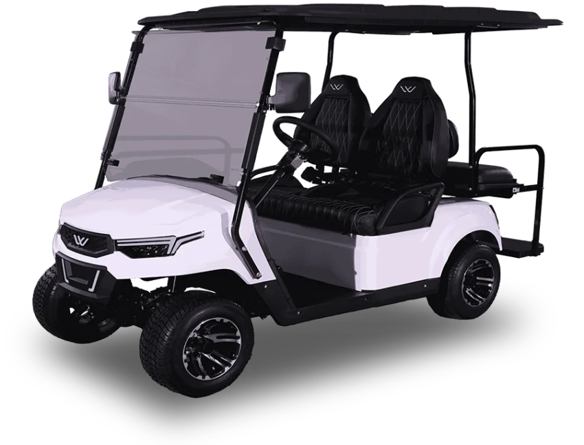 The W3 golf cart is a compact, stylish ride for everyday convenience and leisure. Built on a durable steel frame, it’s powered by a 48V battery system for a steady, reliable ride. As the first cart in Whisper’s Performance Series, the W3 showcases smooth operation without compromise, making it essential for new adventures.