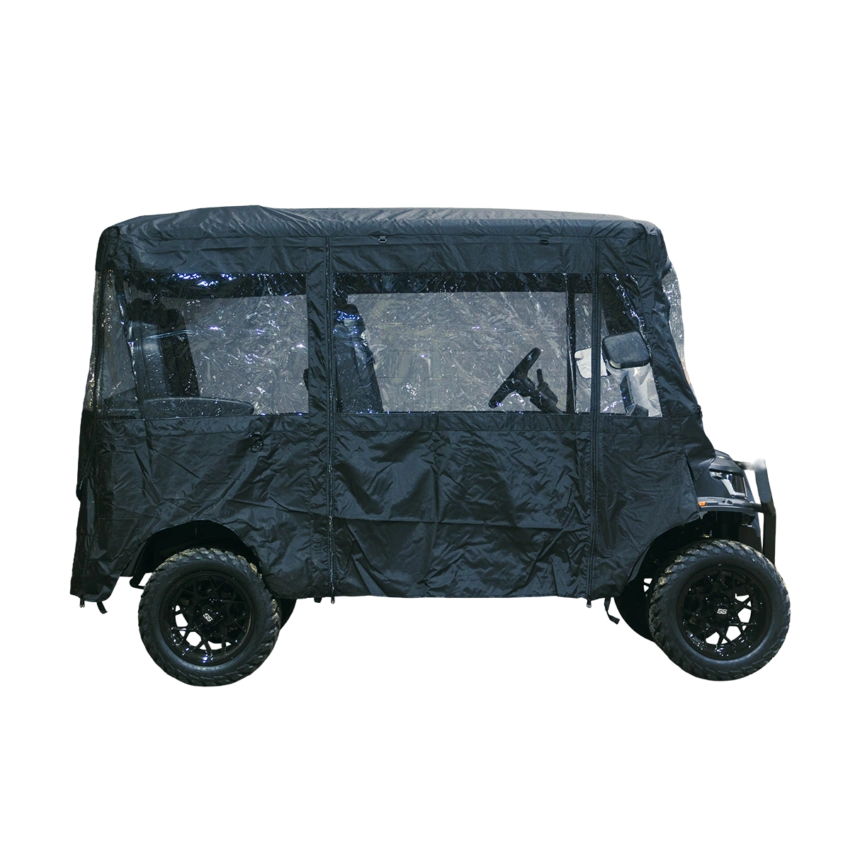 Designed for comfort in any climate, the Whisper FF4 Enclosure keeps both front passengers shielded from the elements. Tailored for the FF4 Whisper model, this enclosure offers the perfect solution for brisk mornings and chilly nights. Durable and weather-resistant, it’s your go-to accessory for year-round cart usage— whether you’re commuting around the neighborhood or navigating the course.