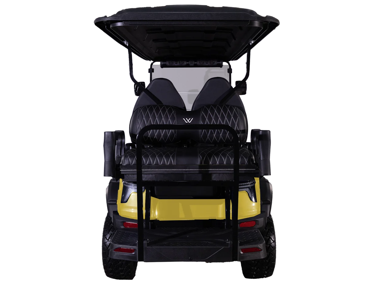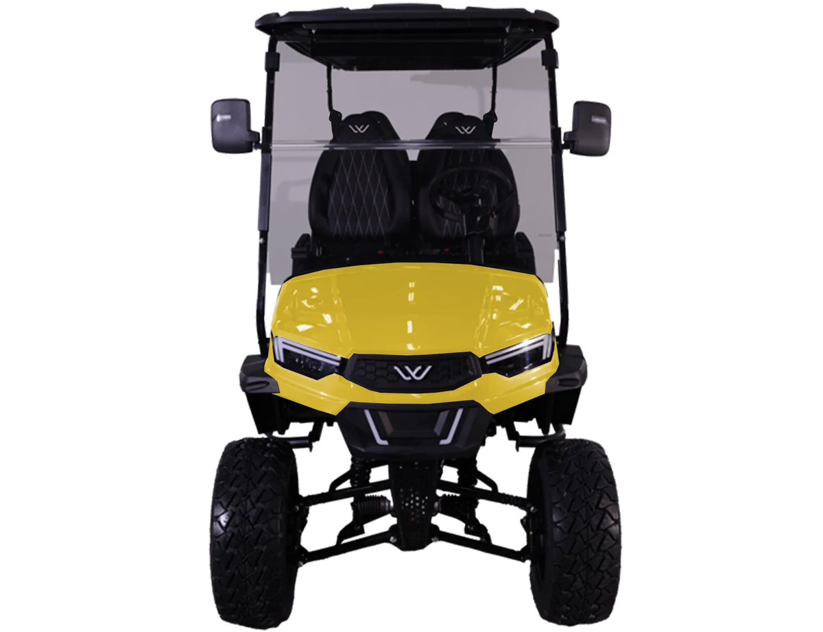 The lifted chassis of this fantastic golf cart provides extra clearance, and the 14″ wheels ensure a smooth ride across various terrains. At the top of the Whisper Performance Series lineup, the W7 XL offers exceptional value, top-of-the-line features, and an undeniable presence.